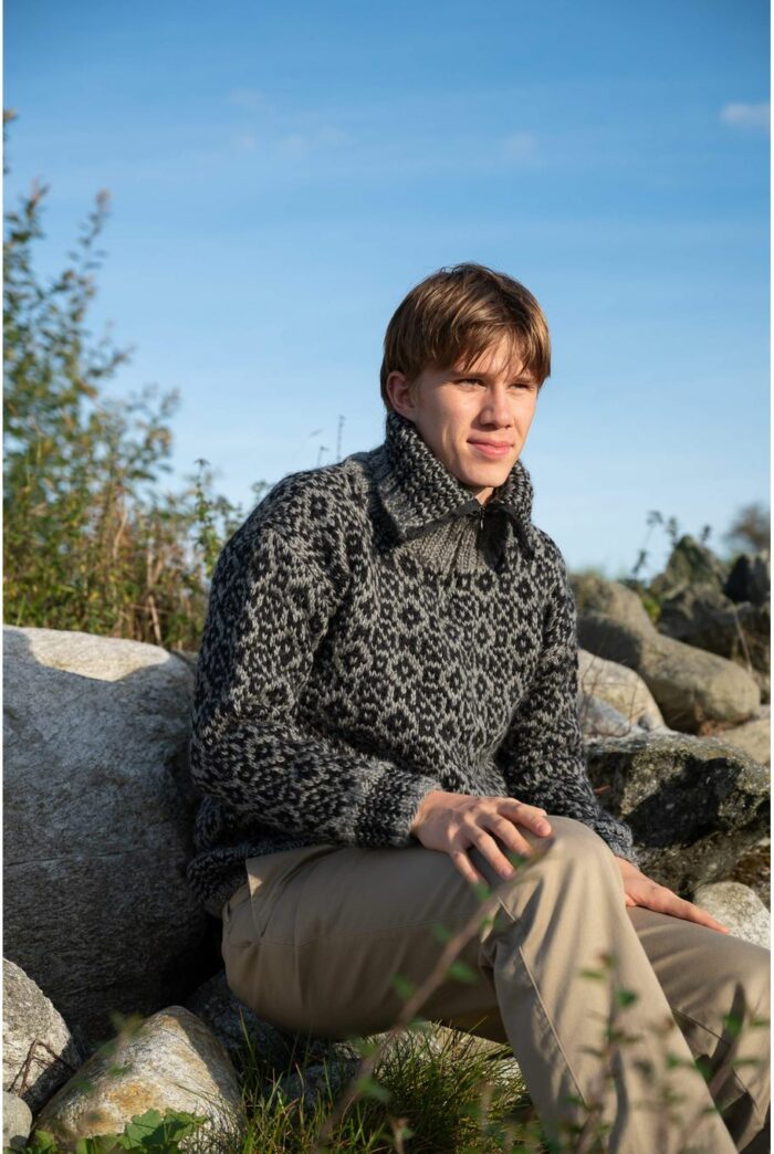 14 m mønstret glattstrikk på p nr 7 = 10 cm
